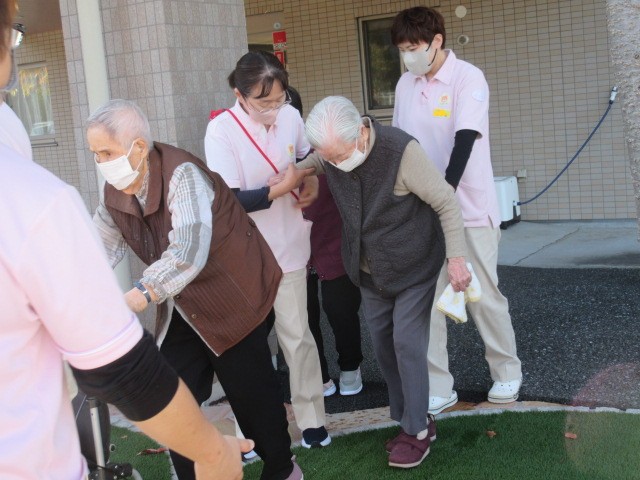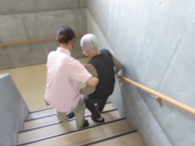 フロアからの出火を想定し、入居者様、デイサービス利用者様も一緒に訓練を行います。
